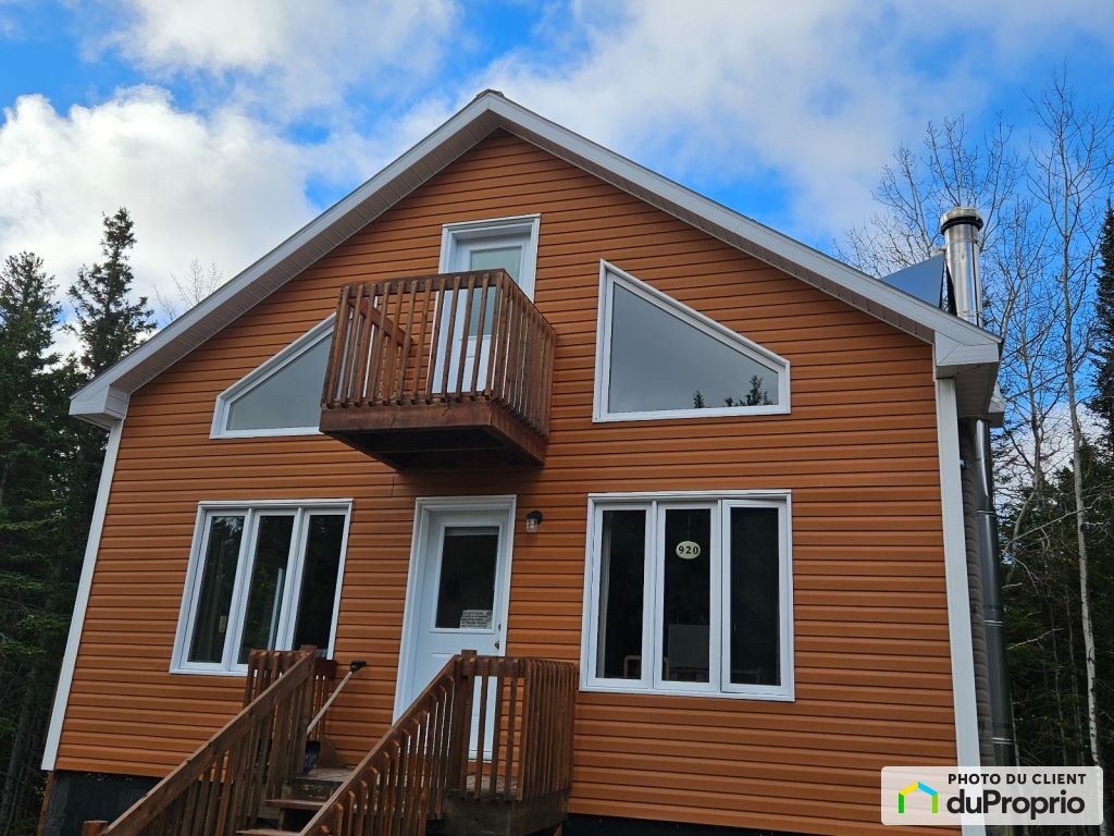On retrouve une habitation de style chalet suisse 4 saisons, alimentée en énergie par une génératrice Honda et batterie 12 volts.
