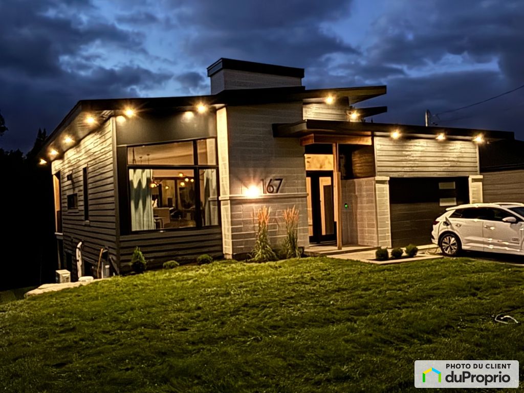 Superbe propriété moderne construite en 2024 et située dans un quartier résidentiel de la ville de Magog. Cette luxueuse maison offre des espaces de vie lumineux avec sa fenestration imposante, son plafond cathédral en lambris et ses portes patio triples tant à l'étage qu'au rez-de-jardin.