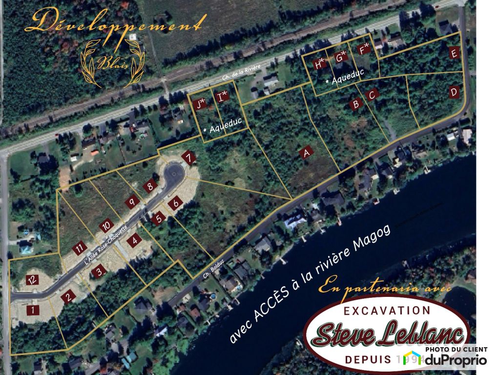 All displayed lots benefit from access to water from the Magog River, a sought-after privilege that adds to the quality of life and the value of the area.