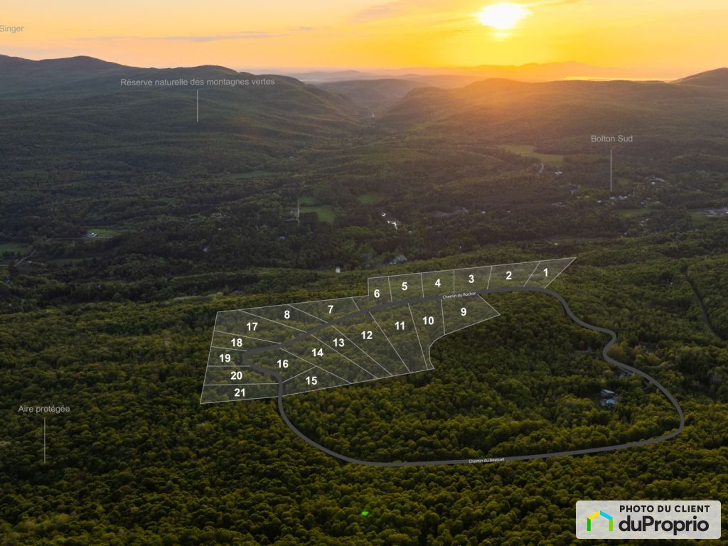 Situé à seulement 1h15 de Montréal, 20 minutes de Magog et 40 minutes de Sherbrooke, Le Versant du Mont Peeve propose 21 terrains uniques, parfaitement intégrés à l'environnement naturel.