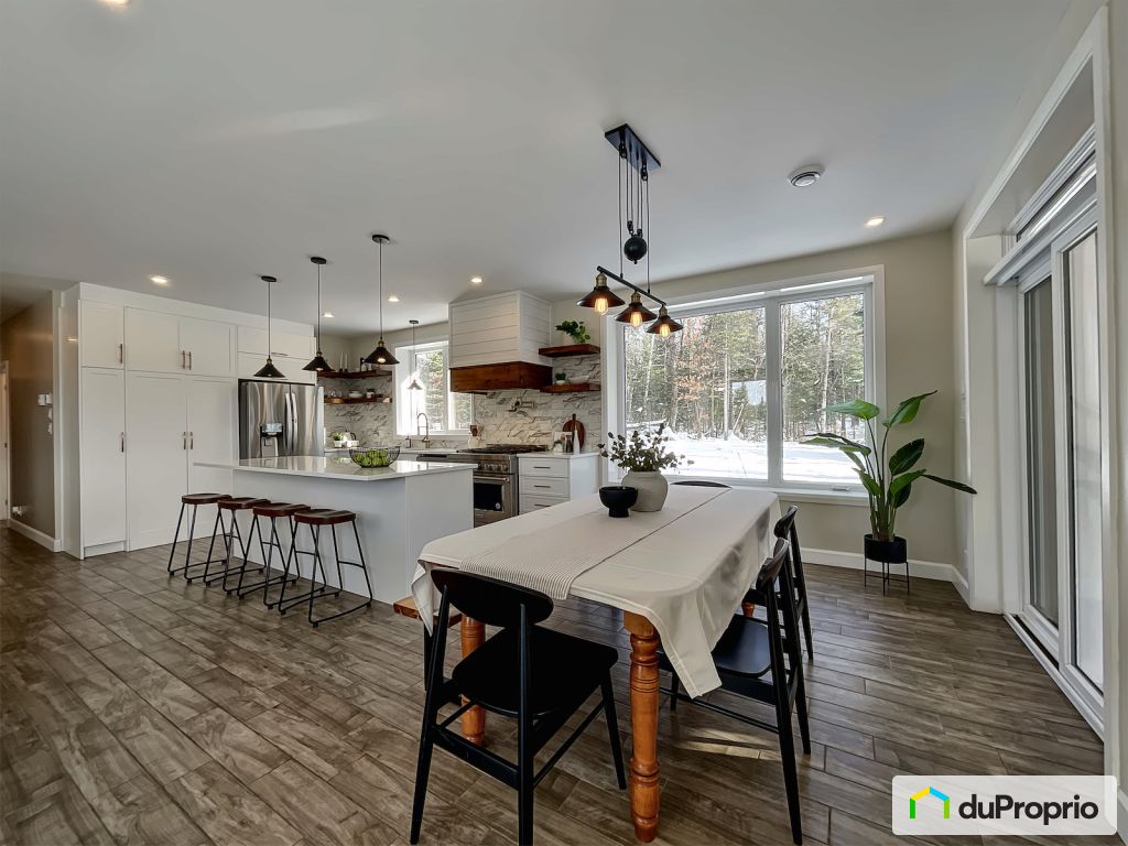 -Construction 2020 aire ouverte, coffrage isolant avec plancher radiant (glycol) sur les 2 étages + foyer au gaz (propane) dans le salon. Fenestration très abondante. Chauffe-eau instantané au gaz (propane).