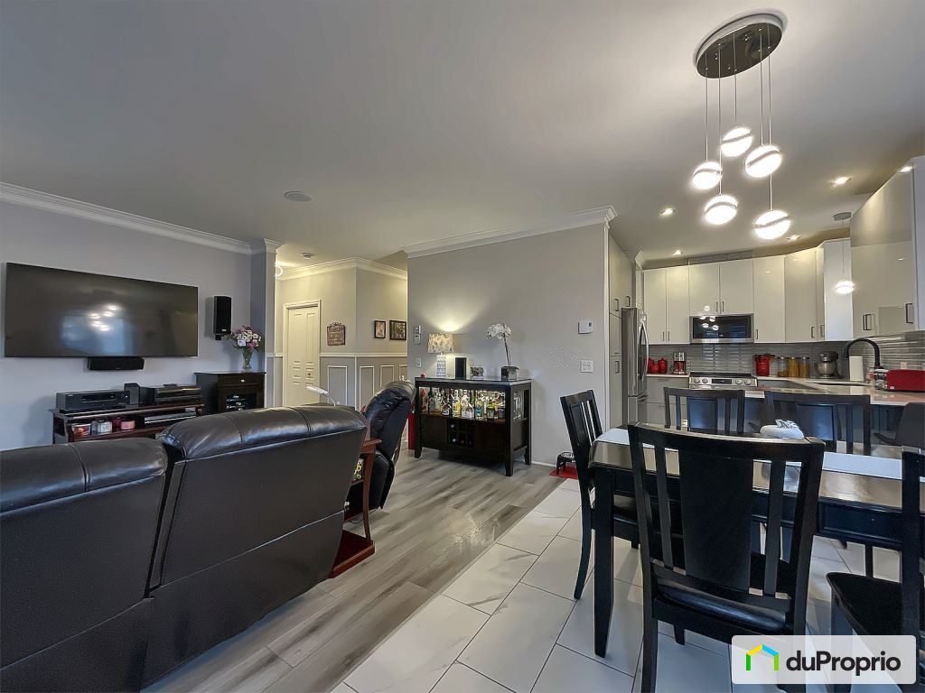 Les animaux sont acceptés. Magnifique condo au rez-de-jardin avec terrasse, porte-fenêtre en moustiquaire afin d'ouvrir les deux portes menant à celle-ci, afin de profiter de la belle saison. Ce condo est très lumineux avec des plafonds de 9 pieds. Cuisine, foyer, plancher et caissons, mur du salon en céramique haut de gamme, refait au goût du jour (2 ans). Des haut-parleurs sont intégrés au plafond du salon, salle de bain et chambre à coucher principale. Possibilité de balayeuse centrale (la tuyauterie est déjà là). Un cabanon aménagé pour vos rangements. Ce condo possède tous les avantages à proximité à moins de 5 km, garderies, écoles primaires et secondaires à faire à pied, centres commerciaux, magasins, restaurants, près de l'autoroute 15, réseau d'autobus. Rénovation effectuée par le syndicat de copropriétaires : les toitures ont été refaites en septembre 2022. Bon voisinage et bel environnement plaisant à vivre !