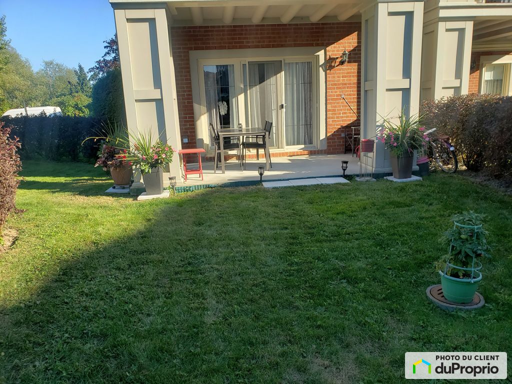 Possibilité de visiter en tout temps sur Rendez-vous. Les cours Georgiennes secteur recherché. Ce condo de coin de 1281 pi. carré, avec un beau grand terrain devant le patio et sur le côté, vue sur le boisé offre une tranquillité avec tous les services à proximité. Sur 2 étages les pièces sont toutes très grandes. Cuisinière Jenn-air au gaz naturel, un îlot en granit 7 pi 9 po x 3 pi donnant sur la salle à manger, point de rassemblement assuré. Un immense salon avec foyer au gaz naturel sur un grand mur de pierre gris foncé. La chambre principale a un walk-in et un grand balcon 16 x 8 pi.Au RDC un patio en béton 16 x 8 pi avec une sortie de gaz pour le BBQ, fini le transport de bonbonne. Une piscine creusée, chauffée au sel.