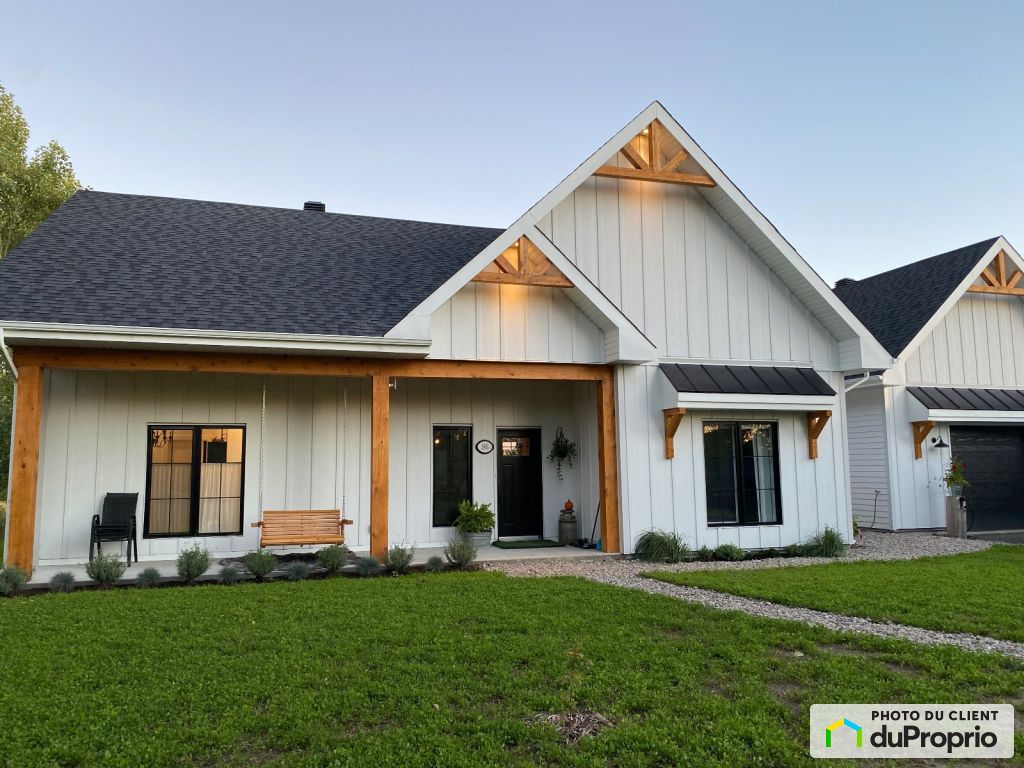 Grand plain-pied style farm house avec terrain de 40636.9 pieds carrés, sans voisin arrière pour ceux qui cherche la tranquillité tout en étant à 6 minutes de l'autoroute 30. Dès que vous entrez, vous êtes accueillis par un grand espace ouvert, baigné de lumière naturelle, qui relie le salon, salle à manger et la cuisine. Les hauts plafonds de 10 pieds et les grandes fenêtres créent une ambiance lumineuse et aérée. Plancher de béton chauffé au glycol, verrière trois saisons avec foyer suspendue. deux chambres, une salle de bain et une salle d'eau, superbe cuisine avec grand ilot avec comptoir de quartz , Walk-in. Grand garage avec prise pour véhicule Électrique. Cette propriété est un vrai havre de paix.