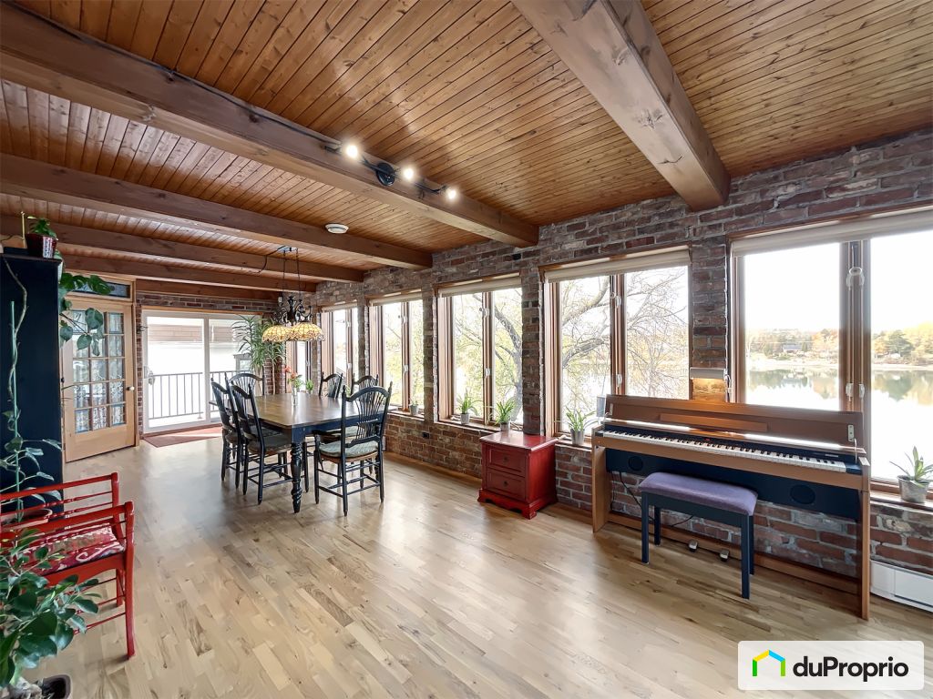 Dès l'entrée, laissez-vous envelopper par l'ambiance chaleureuse créée par les boiseries, les planchers de bois franc (sablés 2024), les murs de briques, les poutres apparentes et une fenestration généreuse qui offre une vue imprenable sur la rivière.