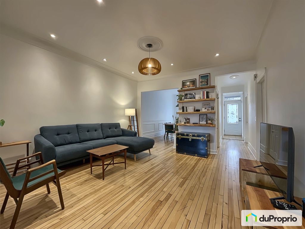 A stunning, bright two-bedroom condo located on the Plateau-Mont-Royal. This condo offers a well-designed, airy living space with an open-concept living room and high ceilings (8' 10'' or 2.70 m). The living area receives an abundance of natural light throughout the day thanks to the open floor plan.
