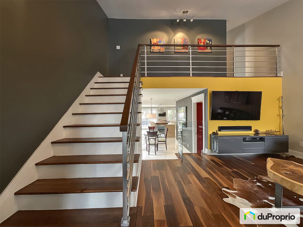 In the basement: exterior entrance, large bedroom, shower room, huge family room with bar and wood fireplace. The floors and stairs are vinyl, glued for the stairs and floating for the rest. In addition, there are 2 storage spaces.