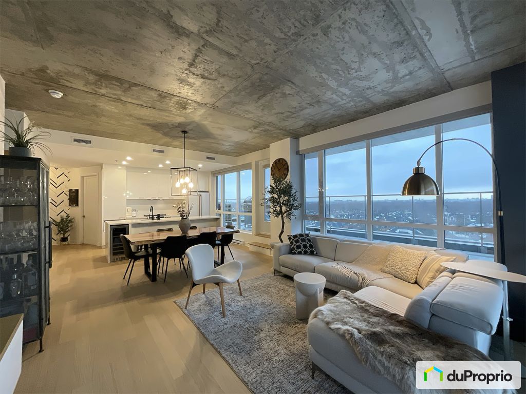 Discover an exceptional penthouse, bathed in light thanks to its fully fenestrated living area offering an unobstructed view of Mount Royal and splendid sunsets. This corner unit is distinguished by its warm atmosphere and its large 452 sq.ft. private terrace, accessible directly from the living space