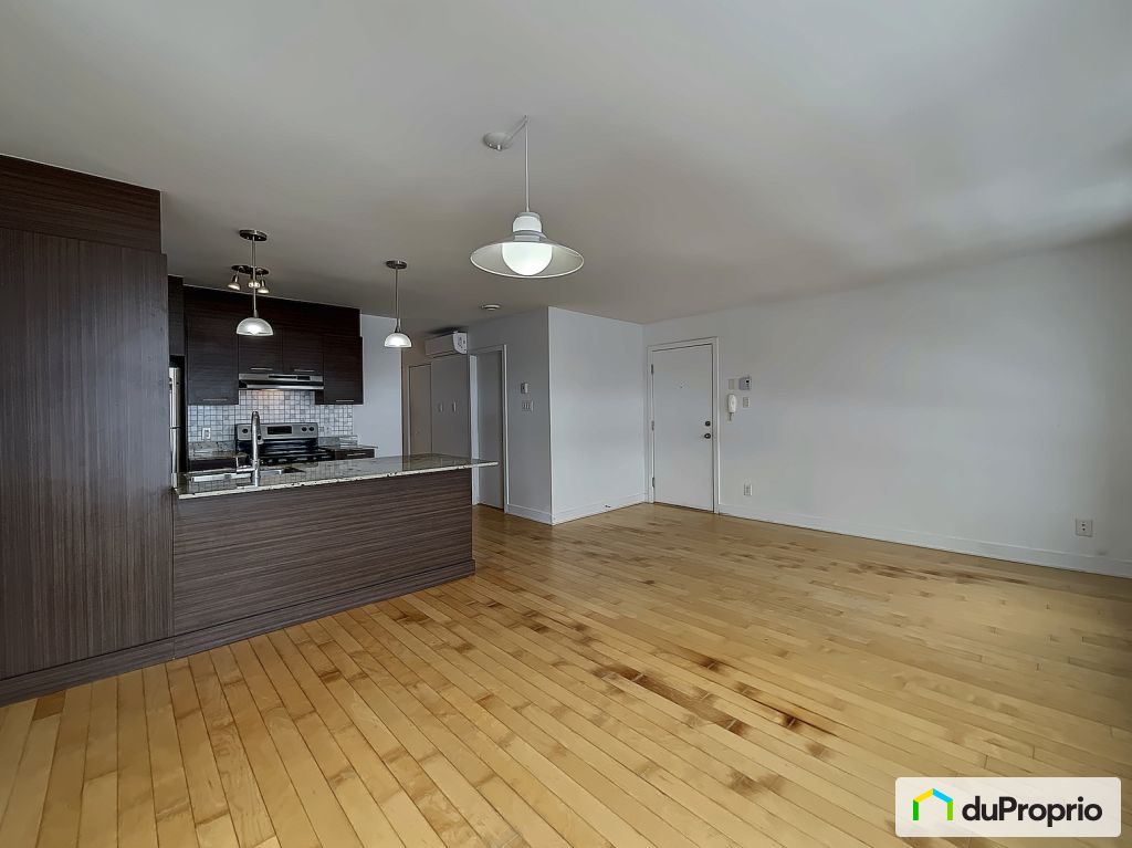 Salon et salle à manger à aire ouverte avec comptoir en GRANITE et air climatisé. Près du parc des Hirondelles, parc-nature de l'île de la Visitation et de plusieurs écoles. À 5 minutes de Pie IX où se retrouve le centre commercial Forest.