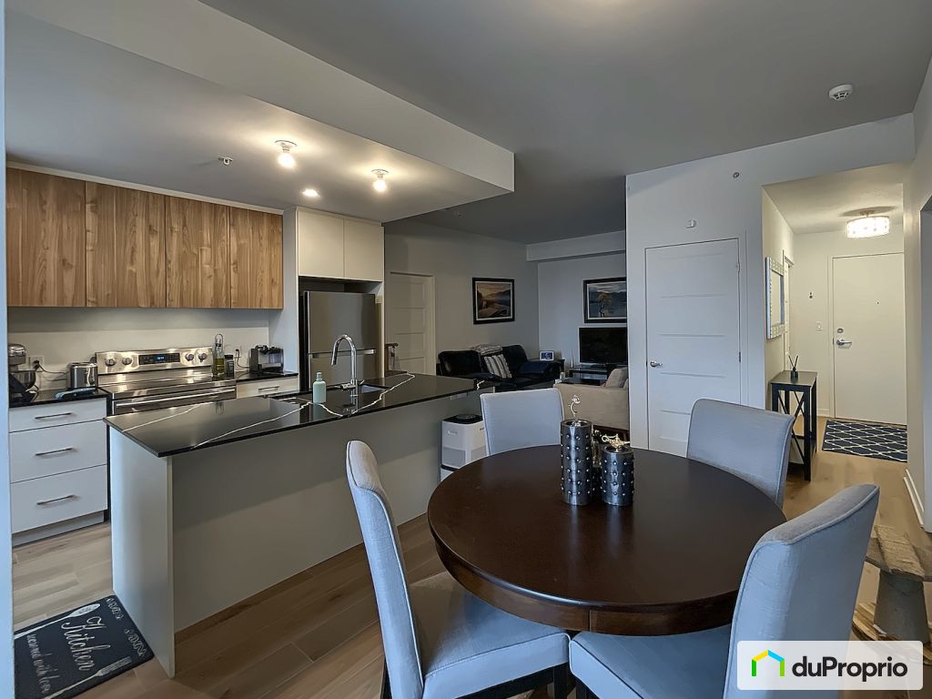 Condo avec fini de qualité supérieure, îlot en marbre, plafonds 9 pieds, grande aire habitable et aire de vie à l'extérieur (prête à être aménagée à votre goût), armoires en mélamine, planchers de bois flottant résistant aux égratignures, et thermostats intelligents Hilo dans fragmentation les pièces!
