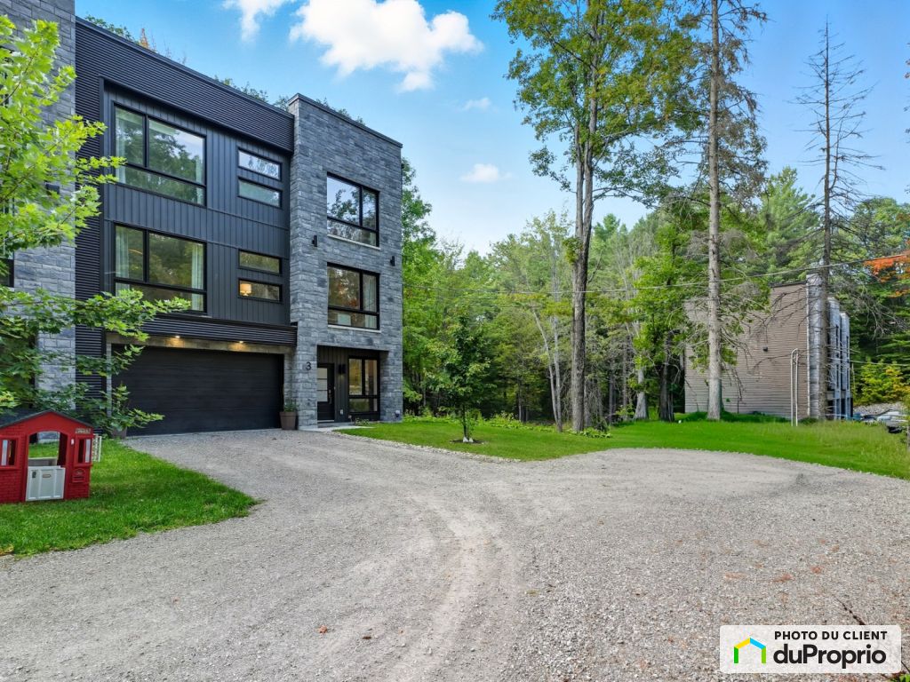 Contemporary turnkey town house (2023) in Cantley. Designed by a professional designer, each space is distinguished by a fluidity between materials, lighting and color palette, creating a refined and harmonious atmosphere. Upstairs: 2 bedrooms and an open family room (which can be used as an office or 3rd bedroom without a door), 2 bathrooms and 1 powder room. The large windows frame the forest like real paintings. Heated double garage, 3-season veranda, fibreglass balcony and intimate courtyard with no rear neighbours. Peaceful area, near school, services and 10 minutes from Gatineau.