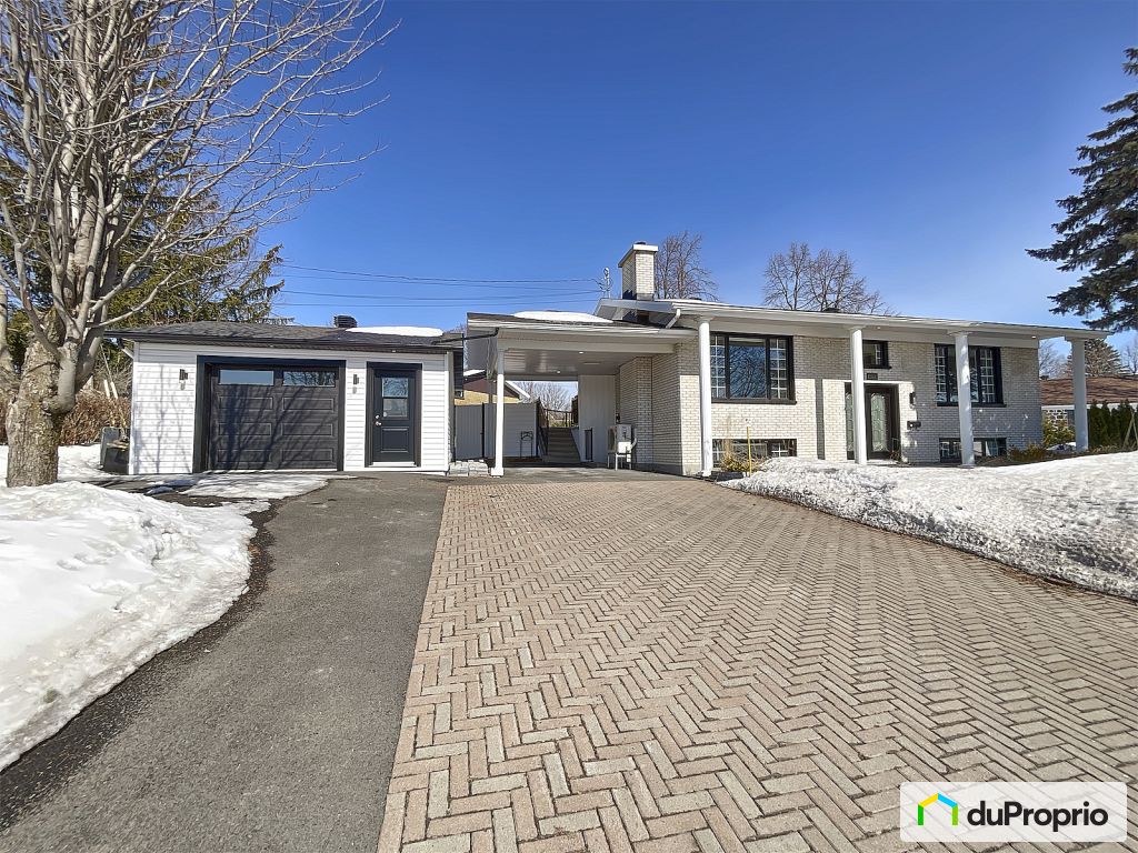 Large 29 X 39 ft raised bungalow, 4 brick sides with attached carport and detached garage. Includes 4 bedrooms with the possibility of installing 2 additional ones if necessary, large bright open areas, a wood fireplace, air conditioning, 2 full bathrooms, a workshop, an outdoor exit in the basement and more!