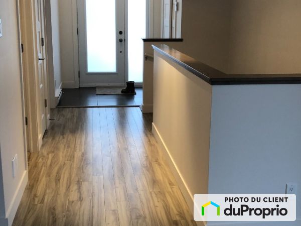 4 1/2. 9-foot ceiling, open-concept interior with spacious and sunny rooms, contemporary kitchen with pantry, lunch counter, 12-foot patio door, bathroom with ceramic shower. Hardwood and ceramic floors, 16 x 12 ft. private fibreglass terrace. Insulated basement, installed gypsum and painted concrete, shower room. Lots of storage.