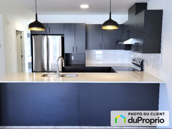 Warm, modern, and luxurious 1021 sq.ft. condo on the ground floor, just a few minutes walk from the REM for quick access to downtown Montreal. This condo features a spacious open-concept living room connected to the kitchen and dining area, 2 large bedrooms, including one with a large walk-in closet, and a full bathroom with both a bathtub and a separate shower. The large windows and high ceilings provide abundant natural light throughout the day.