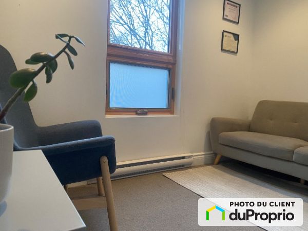 Je cherche à sous-louer deux, trois ou quatre journées par semaine (sauf le mardi) mon bureau de psy meublé à Saint-Lambert dans un bel immeuble centenaire. Sur l'étage, il y a peu d'affluence. Les voisins immédiats sont un architecte et une hypnothérapeute. Il y a accès à une cuisine et à une salle de bain au rez-de-chaussée.