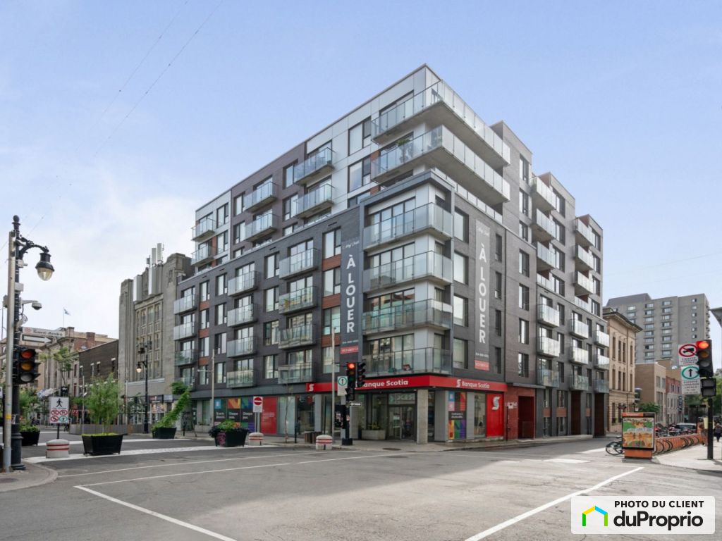 Ground-floor retail space for rent in a recently-built Mondev development ideally located at the corner of Sainte-Catherine and Saint-André in the heart of Ville-Marie, offering excellent accessibility and prominent frontage in a prime location.