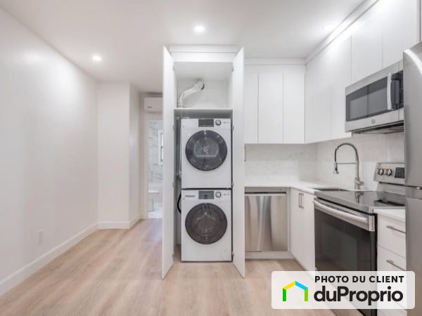 Newly renovated, this ground floor condo includes 2 bedrooms and 1 bathroom, available on July 1st! Located in the heart of In the heart of Montreal, this superb condo is a 5-minute walk from the metro and a 7-minute walk from a Maxi grocery store. It has a private entrance and includes all appliances, including washer and dryer in the unit, dishwasher, refrigerator, and built-in microwave. It also offers a brand new built-in wardrobe with plenty of drawers and closet space. Air conditioning included. Electricity not included. Small animals only.