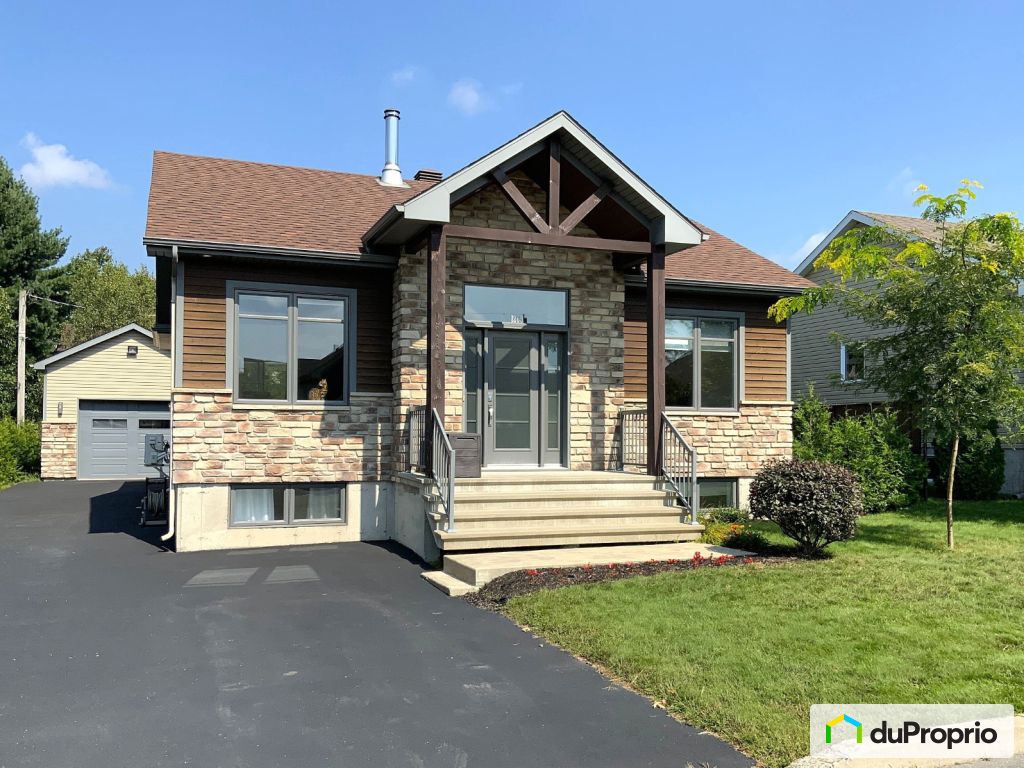 5 chambres, dont 3 au sous-sol. 2 salles de bains complètes, garage détaché 16 x 22 avec mezzanine. Derrière avec vue, beaucoup d'arbres. Stationnement asphalté avec accès pour 5 autos.
