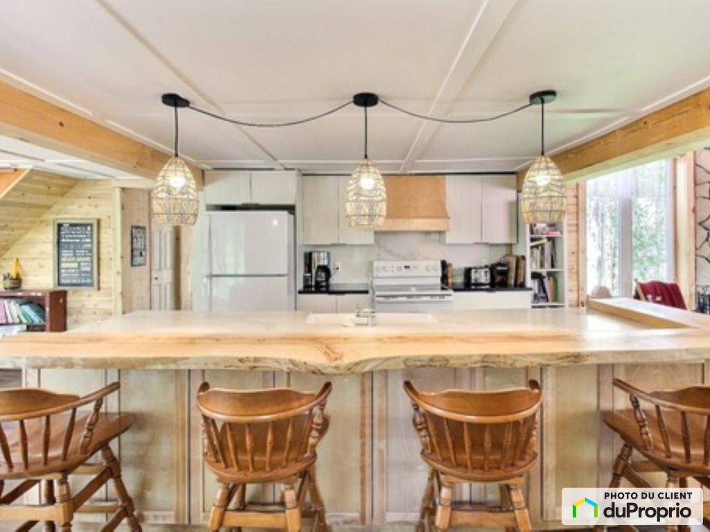 2 poêle à bois (sous-sol et étage). 4 chambres à coucher, 2 salles de bain. grande cuisine aire ouverte avec îlot et salle à dîner. Grand salon fenestré avec plafond cathédrale. Sous- sol fini