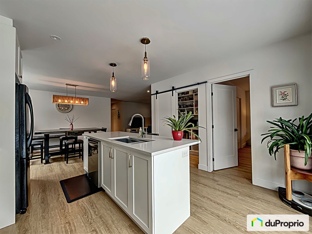 La cuisine moderne au goût du jour séduit avec ses comptoirs de quartz, son dosseret en céramique et son grand garde-manger walk-in. Une porte-patio de 8 pieds mène à une galerie intime de 13' x 10', parfaite pour profiter de la nature.
