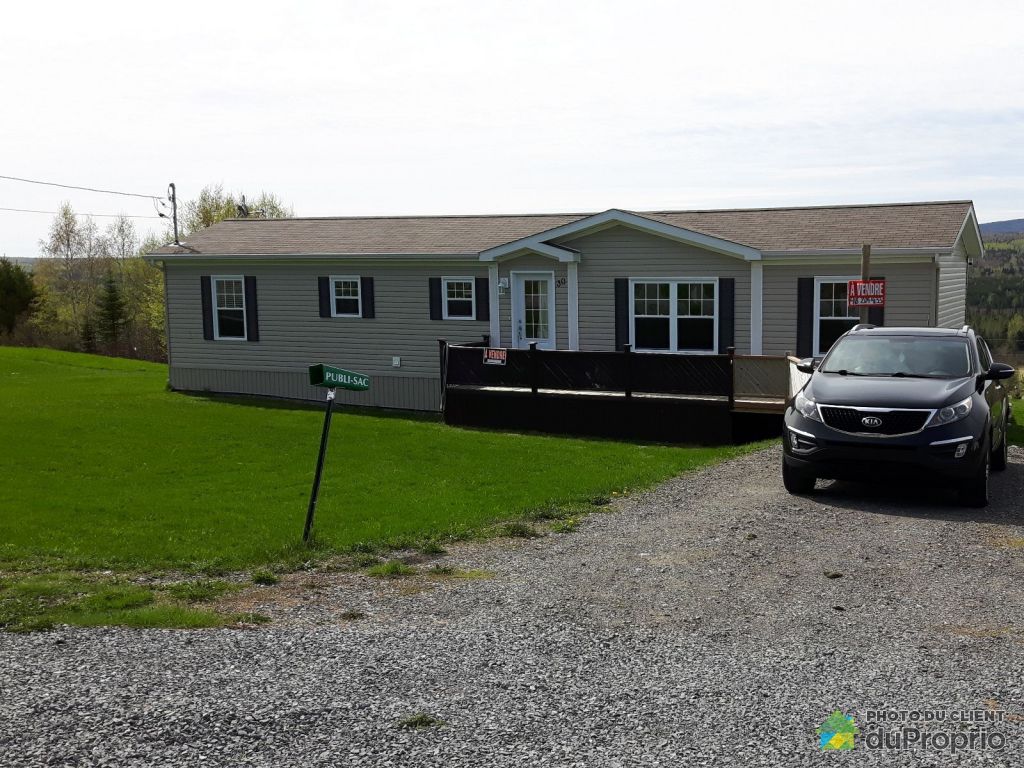 Maison modulaire 2011 (Maison Suprême) au 30 av. McDonald Douglastown. Salon, cuisine et salle à manger à aire ouverte. 3 chambres à coucher de bonnes dimensions. Dimension de la maison 16 x 59 po et rallonge de 12 po x 20 qui constitue la chambre des maîtres avec un walk-in. Grand terrain de plus de 40 000 pieds², dans un coin tranquille, peu de circulation, idéal pour une famille. Galerie avant et arrière refaite été 2015 en bois traité. Galerie arrière en bois traité de belle dimension. Vue exceptionnelle sur les montagnes. Puits, champ d'épuration et fosse septique. Pour plus d'infos 418-209-4133 vous pouvez laisser un message. Je demande 159 500$