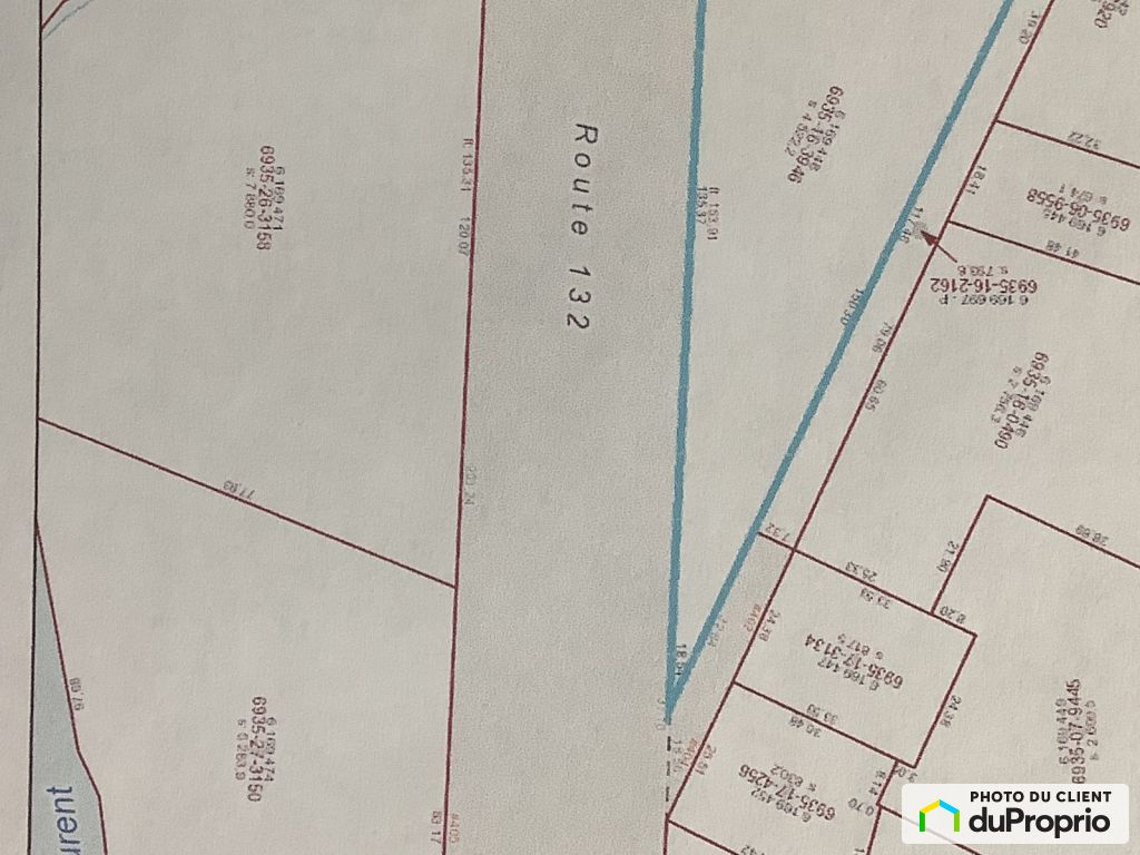 Situé au nord de la route 132 et à l'abri de l'érosion des berges, ce grand terrain en pointe offre un emplacement privilégié pour concrétiser votre projet résidentiel. D'une superficie généreuse de 48 674,4 pieds carrés, il bénéficie d'une façade de 504,95 pieds.