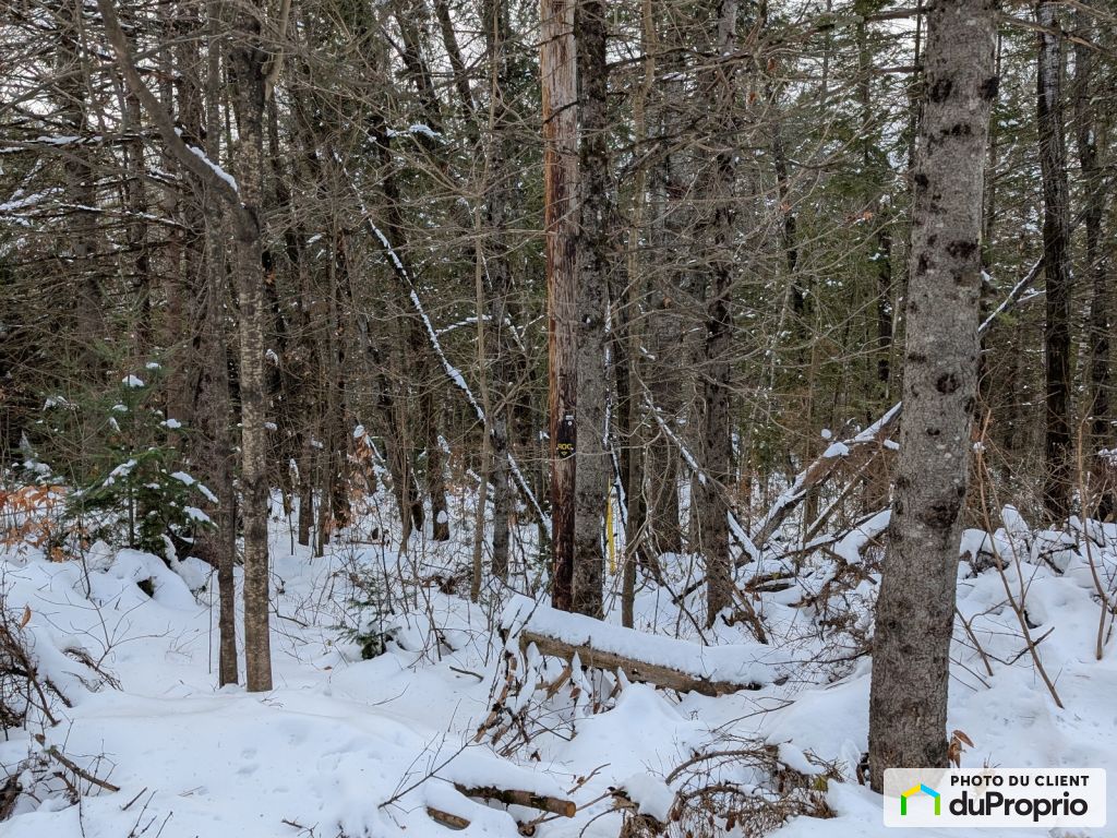 Grand terrain boisé donnant sur le lac miro avec rue asphaltée et services aqueduc.