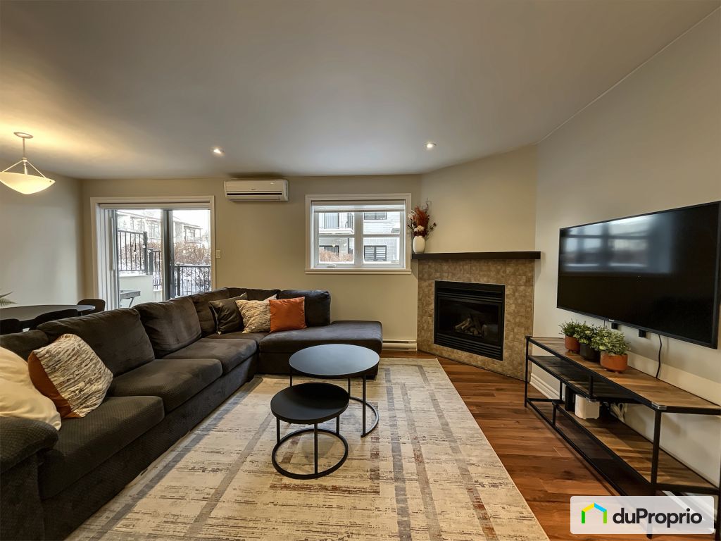Condo de 2 chambres situé au sein du projet Place Royale, offrant une atmosphère chaleureuse avec foyer au propane.