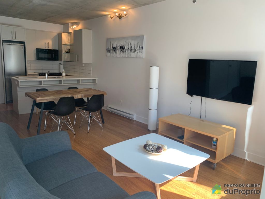 la région.L'unité est située au 8ème étage avec un concept de loft. Le condo est entièrement meublé avec de nouveaux meubles, dont une télévision de 50 pouces. Une séparation mobile a récemment été ajoutée entre la pièce principale et la chambre à coucher pour apporter plus d'intimité. Tous les appareils électriques sont inclus (lave-vaisselle, cuisinière, micro-ondes, réfrigérateur, laveuse, sécheuse). Le condo dispose d'un balcon privé orienté sud-ouest.