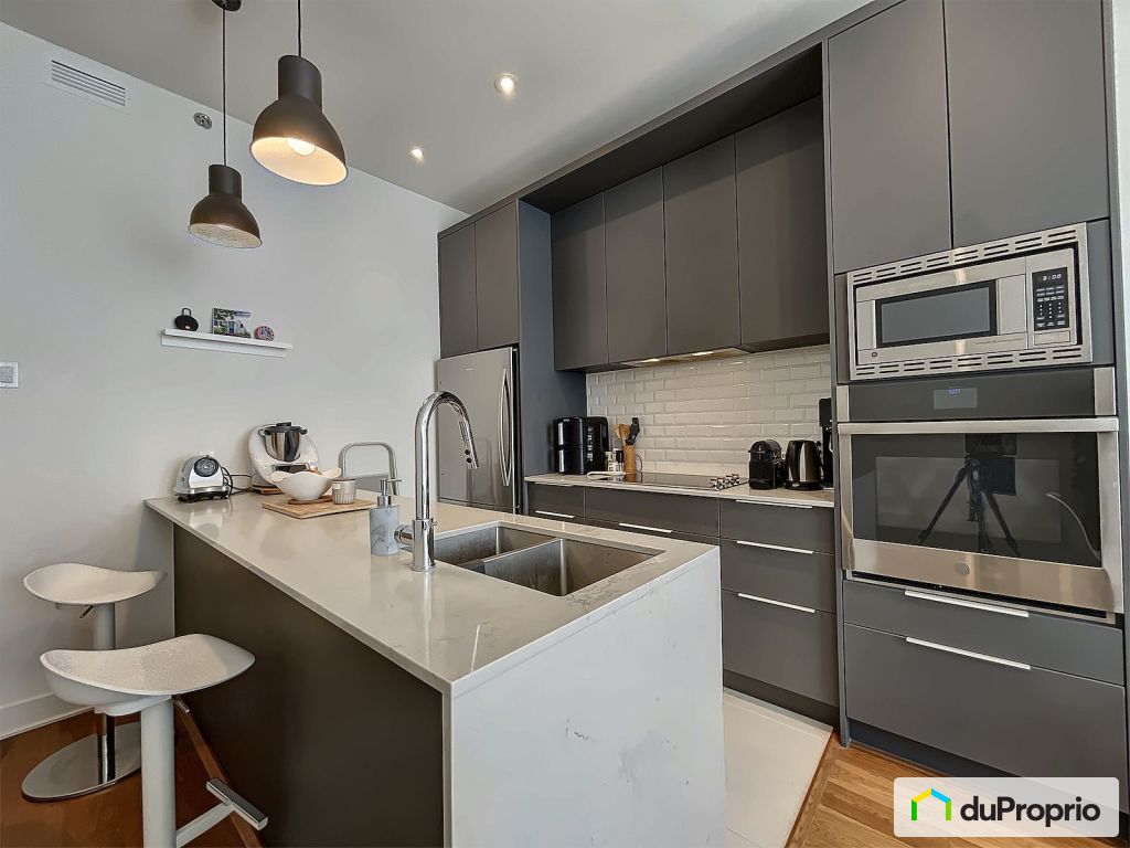 Condo moderne, lumineux et insonorisé, ce logement offre confort et fonctionnalités. Situé au 2e étage d?un immeuble de 3 étages, le condo donne sur une ruelle calme et la terrasse donne sur une cour intérieure. Le condo est loué avec un espace vélo sécurisé.