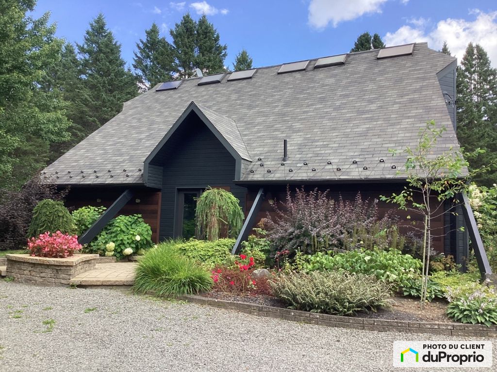 Toit cathédrale / plafonds en deck de cèdre / planchers chauffants en ardoise / thermopompe 24000 BTU / foyer au gaz / nombreux rangements / escalier hélicoïdal / grand patio avec cabanon, spa et gazebo / vaste jardin avec bassin d'eau, ruisseau et cascade / garage séparé / puit de surface / système sanitaire Ecoflo.