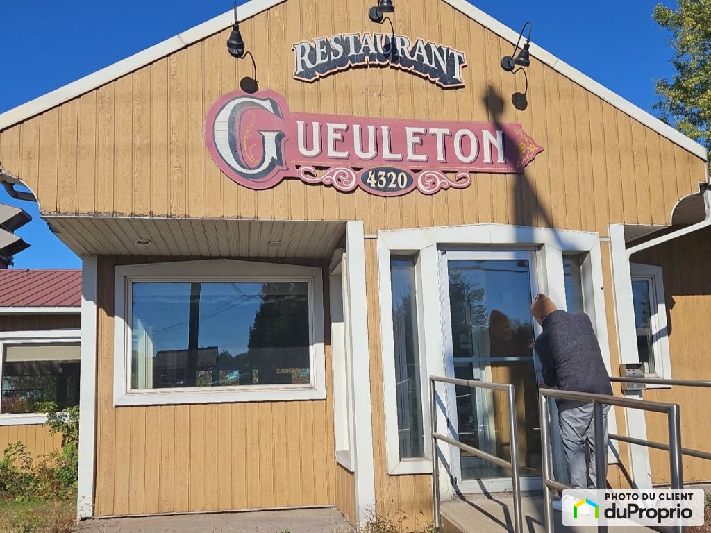 Beau terrain avec bâtiment dessus (présentement ancien restaurant Le Gueuleton). Terrain desservi avec tous les services (aqueduc, égouts et électricité). Terrain avec le fleuve directement à l'arrière. Le terrain a une superficie de 4 687,30 mètres carrés (50 435,35 pi²) et il est desservi par le Circuit électrique avec des bornes de recharge rapide. L'utilisation prédominante du terrain est l'hébergement et la restauration. Il y a possibilité de dézonage avec présentation à la municipalité d'un projet. Aucun voisin à la gauche du terrain et à l'arrière, puisque c'est le fleuve. Terrain idéal pour projet de condos avec quai au fleuve.