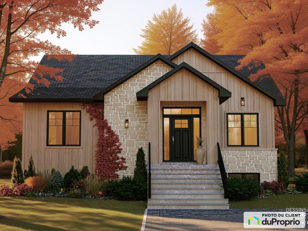 Superbe maison plein pied de style Farmhouse, ayant une superficie 1360pi². À aire ouverte, avec une salle de bain complète, bain et douche séparés, deux chambre et un bureau.