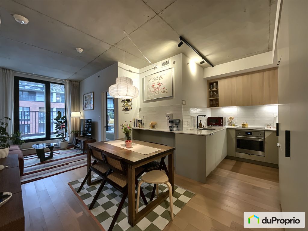 Discover this magnificent condo located in downtown with big terrace with Panoramic view of downtown and the Lachine Canal, ideal for walks or bike rides.