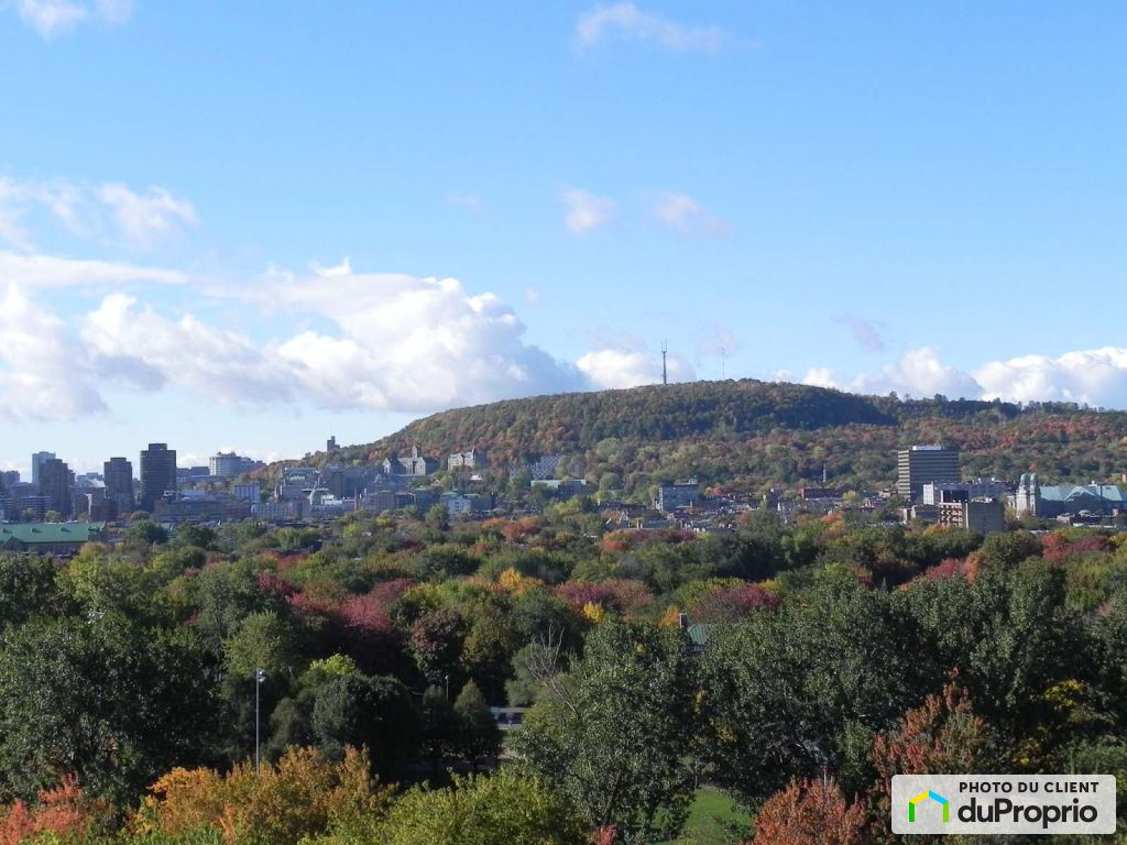 .Vue panoramique et directe sur le Parc La Fontaine, le Mont-Royal, le centre-ville, l'est de Mtl et la Rive-Sud