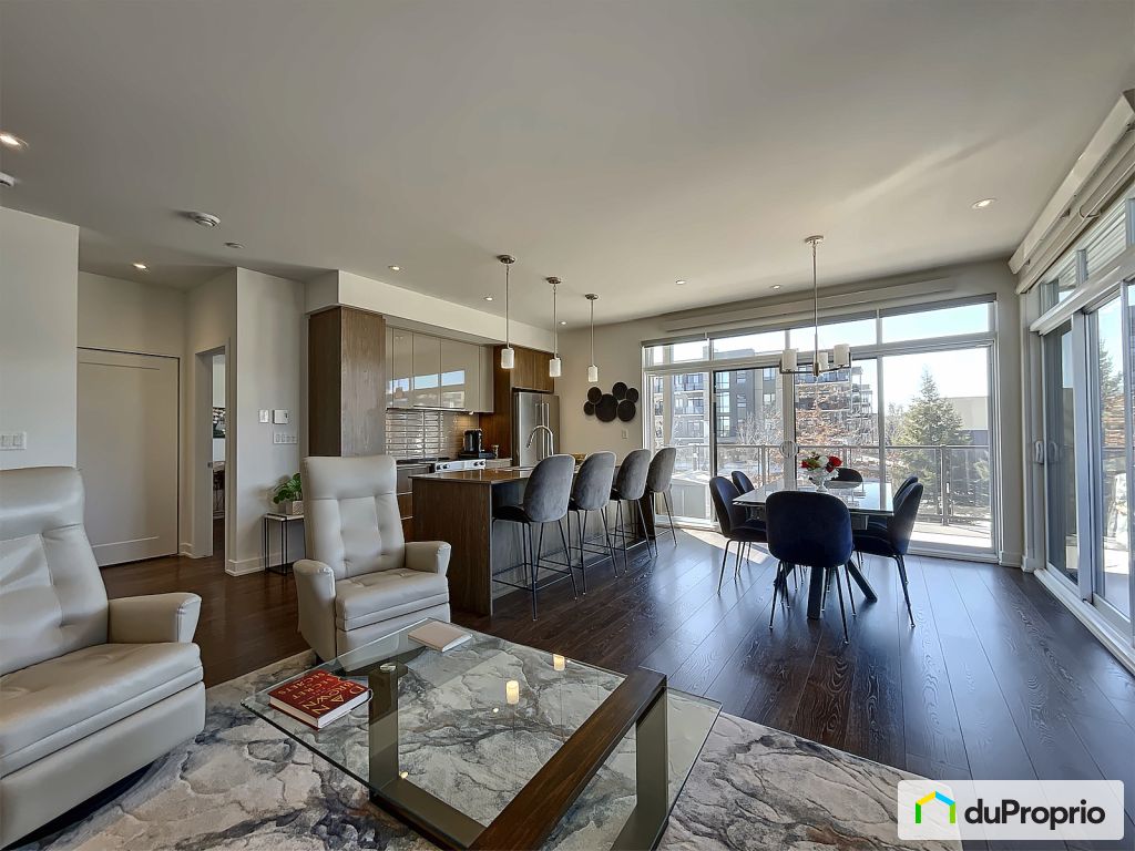 -Grand balcon d'angle avec 2 portes patio et 2 rideaux solaires donnant intimité sur le balcon