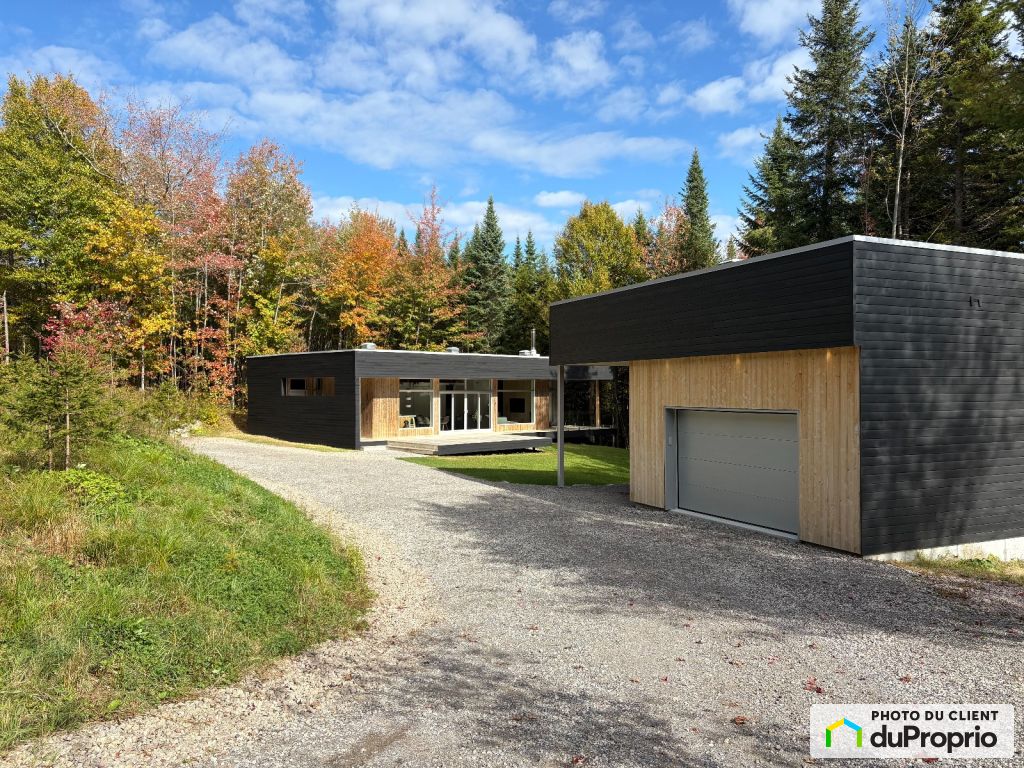 Plain-pied lumineux et bien conçu, inspiré des créations de l'architecte Pierre Thibault, sur un terrain boisé de plus de 56 000 pieds carrés entre les villes de Sainte-Catherine-de-la-Jaques-Cartier, Lac-Sergent et Saint-Raymond.