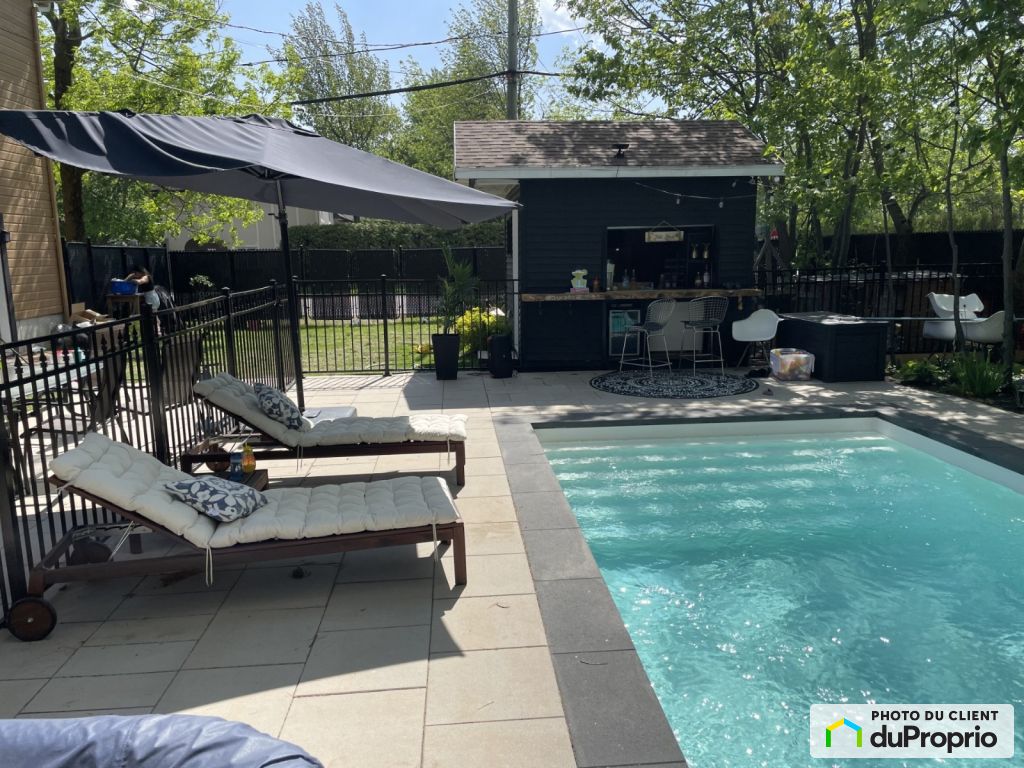 Piscine creusée, chauffée et au sel, pergola, jeux pour enfants, grand espace détente avec cabanon et bar intégré, plus de 900 pi² de dalles, clôture conforme et magnifiques arbres matures offrant intimité et tranquillité.